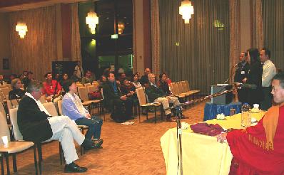 集合教会牧师兰博卡特博士简述了大陆基督教的历史,指出虽然过去两个世纪中基督教一直是以和平的面貌示人,而今天在江氏集团的统治下,许多教堂被迫转入地下活动,并遭受严重迫害。来自西藏的流亡作家巴卓和尚则向与会者讲述了在大陆监狱生不如死的经历。并指出解放西藏时的所谓和平是用120万藏族人被杀、6000多个寺院被毁而换来的假像。
