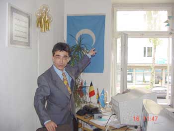 东土耳其斯坦信息中心发言人迪里夏提(Dilixadi Rexidi)摄于该中心慕尼黑总部办公室的档案照片。东土耳其斯坦信息中心主张建立东土耳其斯坦共和国。疆独运动另一派别代表人物是艾山.买哈苏德,主张通过武装手段建立东土耳其伊斯兰共和国,主要在阿富汗和中亚地区活动。(本照片由东土耳其斯坦信息中心总部向多维社独家提供,未经授权不得转载)