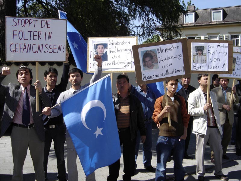 “欧洲东土耳其斯坦联盟”和“东土耳其斯坦信息中心”的指挥下举行了抗议无辜惩罚
