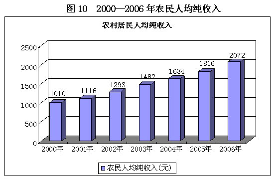4月5日《喀什政府网》公布了 2000年起喀什地区农民经济收入发展状况。该表格说明 2000年农民人均纯收入为 1010元,2001年为