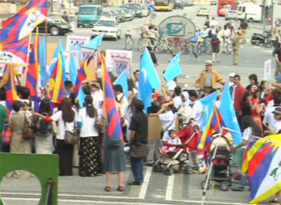8月4日上午 世界维吾尔大会和在德国进行活动的藏族组织一统在德国慕尼黑市举行了大规模示威游行 反对2008年北京奥运会。
