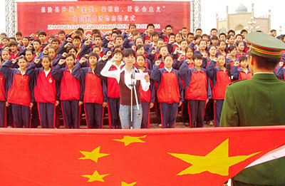 Çin’in devlet bayrağı altında durarak, yukarıda adından