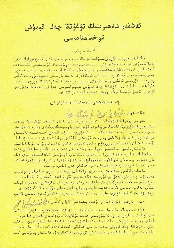 his demands. Ahmetjan received a warning from his