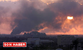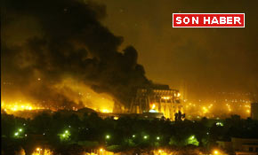 Bağdat'ta dün gece meydana gelen şiddetli bombardımanın ardından şafakta da şiddetli patlamalar kent içinde ve civarında sürüyor. Yeni günün ilk ışıklarında önce birkaç, ardından şiddetli büyük bir patlama meydana geldi. Şehir içindeki patlamaların ardından, Bağdat'ın dış mahallelerinde de şiddetli bir patlama duyuldu. |