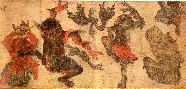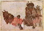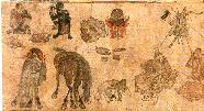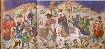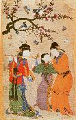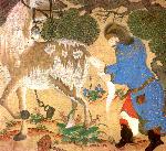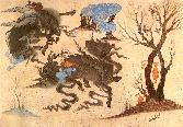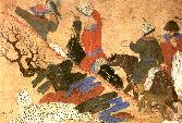 The Chinese dynasties had a dominant effect on Mongol and East Turkestan painting. The effect was brought to Western Asia by Mongols and Persians. During the time of Timur, the relations between Turcomans and the Ming Court were concrete. Under Shah Rukh relations with China became more cordial, however the Ming returned to neo Confucian practice and the traditional tributary relations and the gift exchange with the hope of making a good Muslim out of Ming stopped. In any case, the overland trade between China and Central Asia stayed steady. The effects of the Chinese and Central Asian artistic style became dominant in early 1400s. The miniatures depicted in this page are attributed to Mehmed Siyah Qalem and other Siyah Qalem school painters.