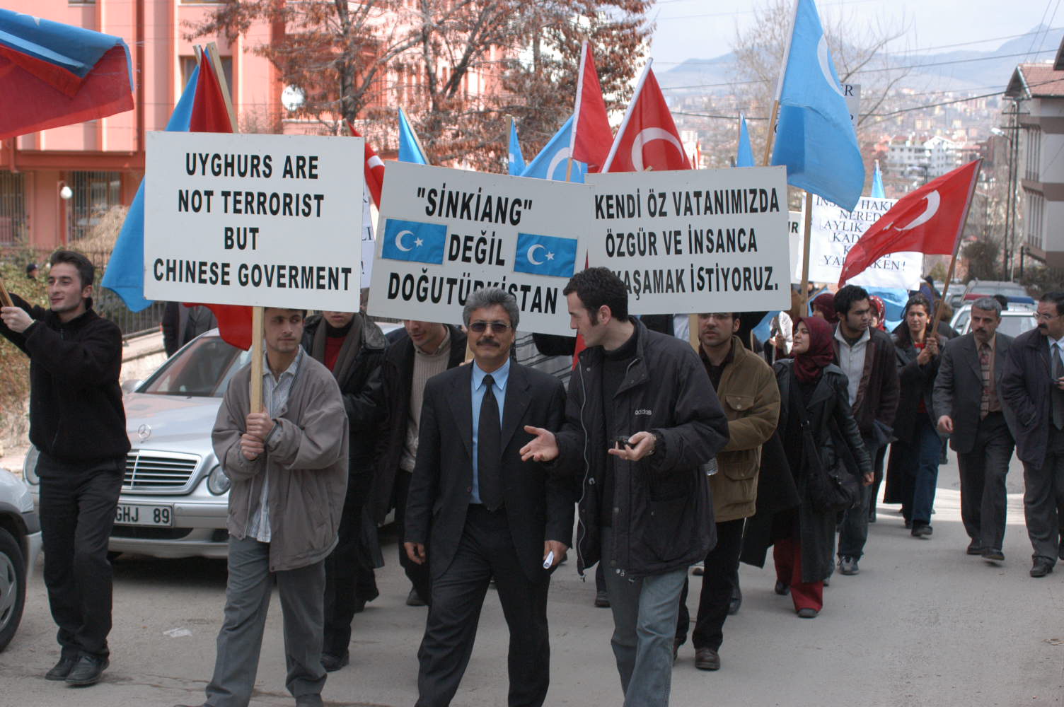 Namayiş iştirakçiliri Şerqiy Türkistan we Türkiyening dölet bayriqi, Xitayğa