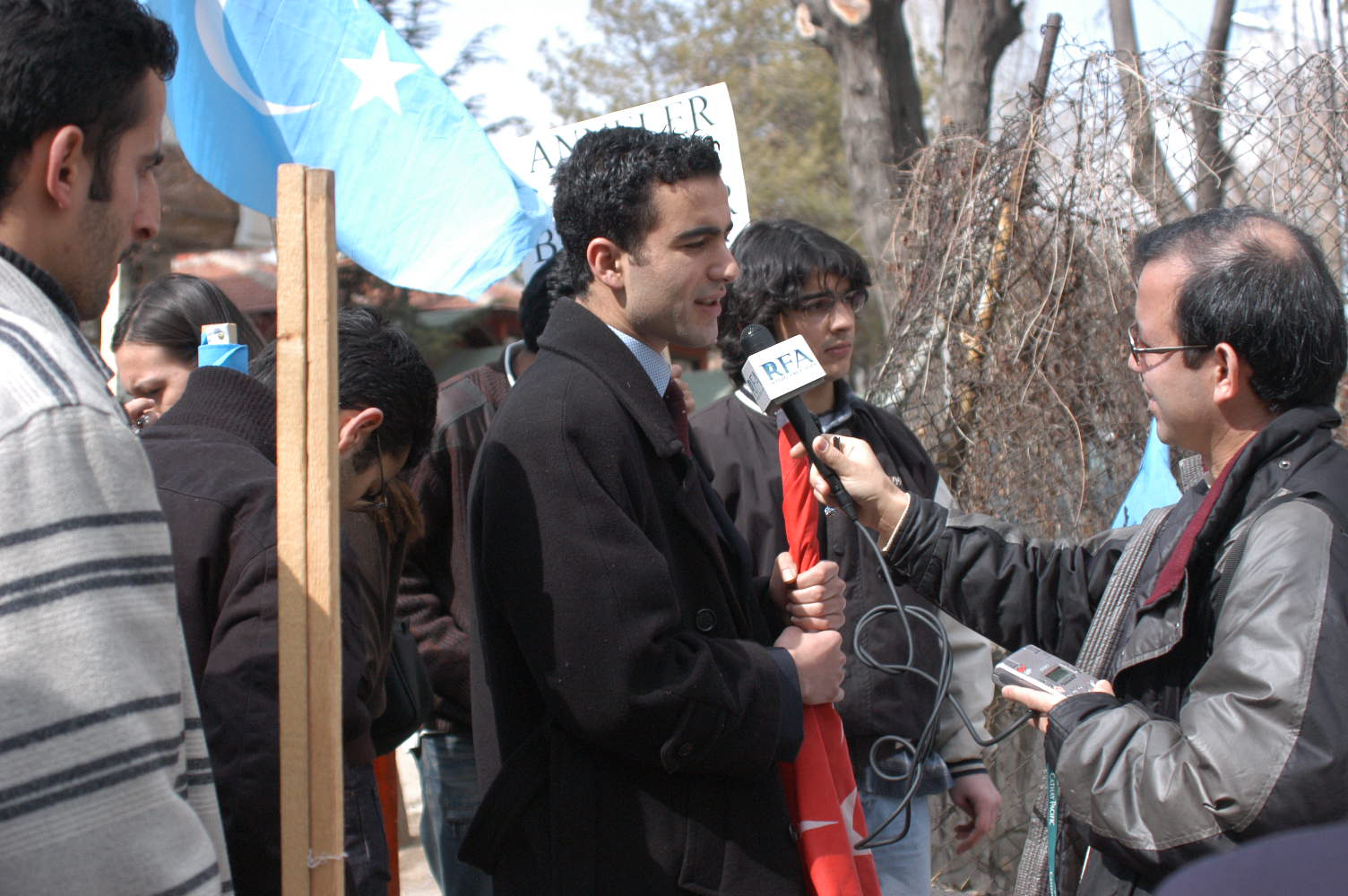 muxbirliri, erkin Asiya radiosining muxbiri qatarliqlar namayiş jeryanini