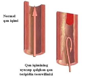 qan tomurining tosulup qilishini minge qan tomuridiki uyushup qalghan qan