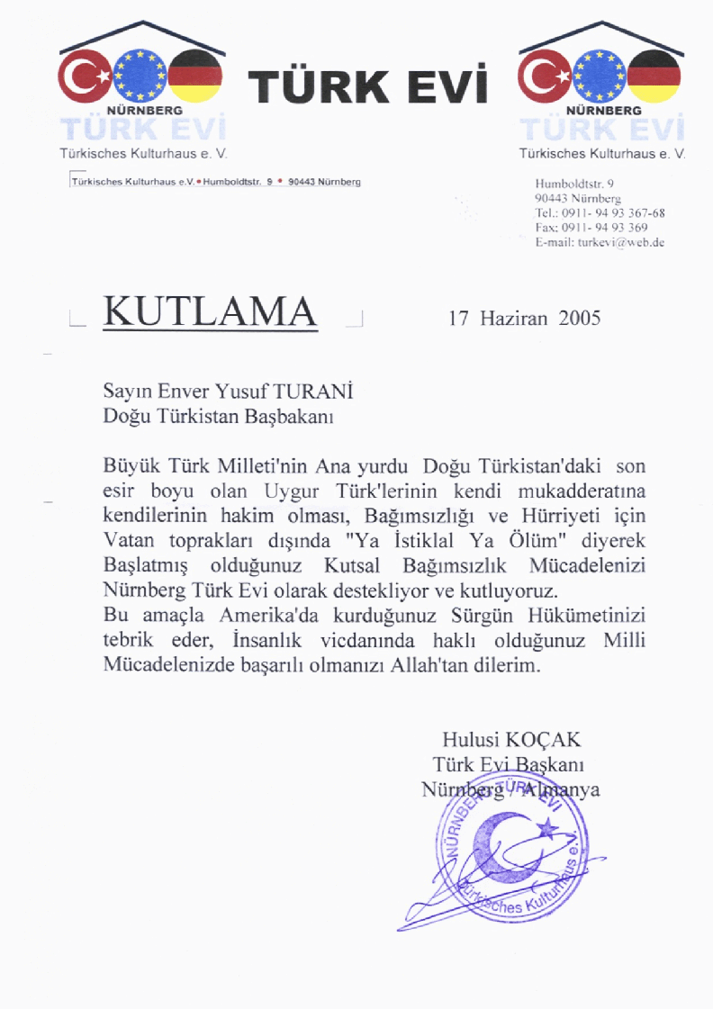 Bu munasiwet bilen Germaniyadiki köpligen Türk teshkilatliri Enwer Yusupni