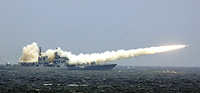 qatnashqan Rusiye urush paraxoti bashqurulidighan bomba qoyup bermekte. .AFP