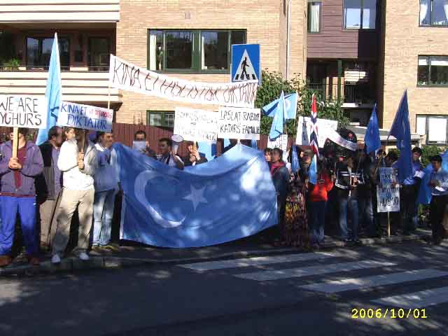jarangliq awaz bilen: ”Uyghurlargha erkinlik”, "Uyghurlargha musteqilliq”, "Siyasi