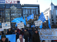 chiqti,namayishchilar yol boyi Norweg we Ingliz tillirida "Xitay diktatur!”