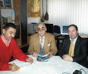 Abdujélil Qaraqash we muawin reyisi Perhat Yorungqashlar bilen semiymi halda