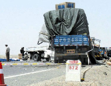Aqsuning Shingha nahiyesi teweside ikki yük mashinisi soqulup kétip,