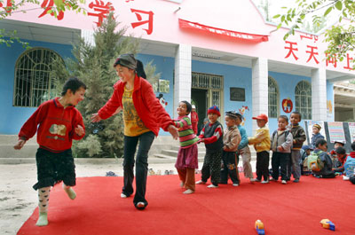 öz perzentlirini Xitayche yeslilerge apirip berishini qolgha keltürse,