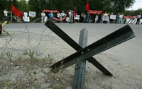 demonstrate in front of a US military base in Manas, 07 July 2007. AFP PHOTO