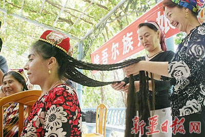 musabiqisi ötküzgen bolup, güzel Uyghur qizlirining sumbul chachliri we