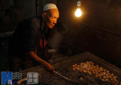 (Yuqarqi sürette: choghda tuxum pishuriwatan Hotenlik Uyghur)