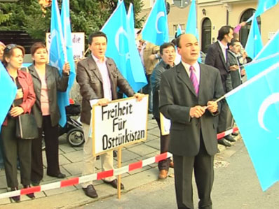 Germanche, Xitayche we Uyghurche sho’arlar bilen Xitay konsulxanisi aldini