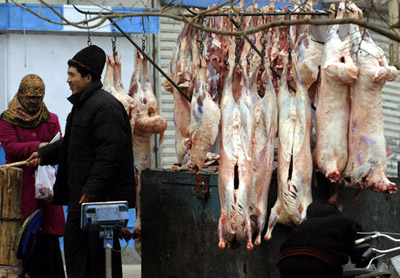 yoq köp sanidiki Uyghurlar bazardin gösh sétiwélishqa mejbur bolghan.