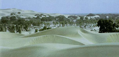 kirgen qum tüpeyli, oy jahazlirini bir santimétér qélinliqta qum basqan.