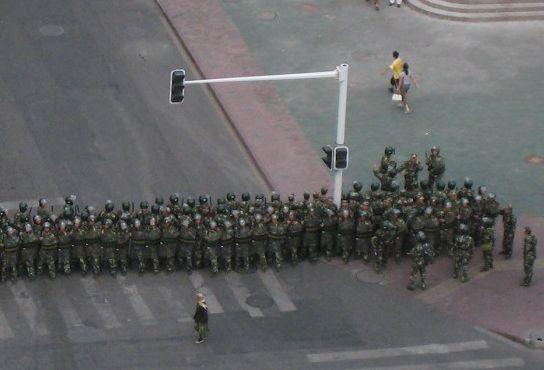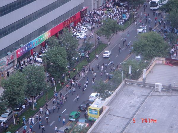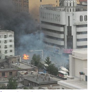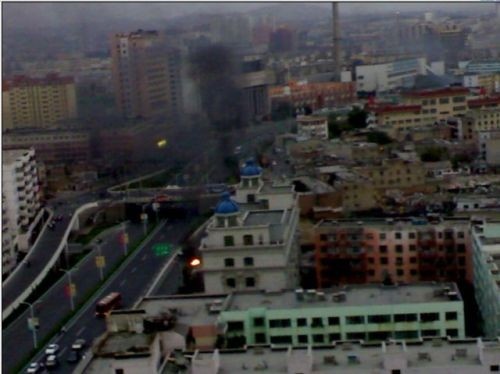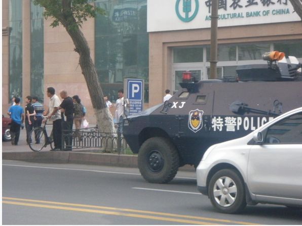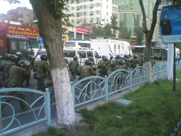 Hazir Ürümqidiki < xelq meydani > etrapida namayishchilar bilen saqchi –