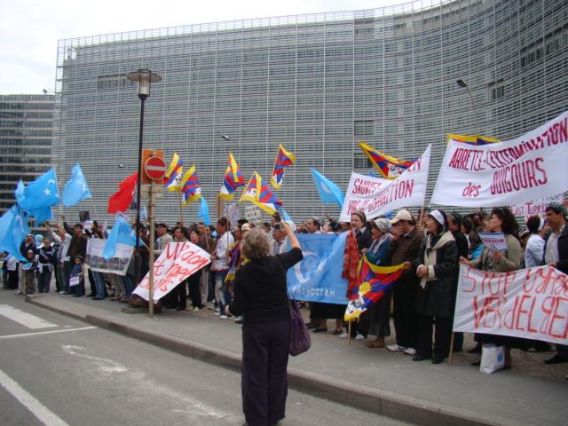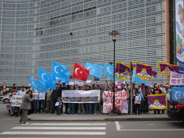 Bilgiyening paytexti Bürükseldiki Yawropa parlament binasi aldida Xitayning
