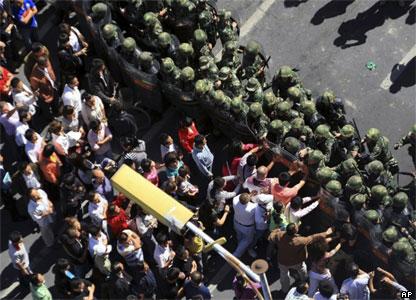 emeldarlarni namayishchilargha nesihet qilip, ammni tarqitiwetishke ewetken.